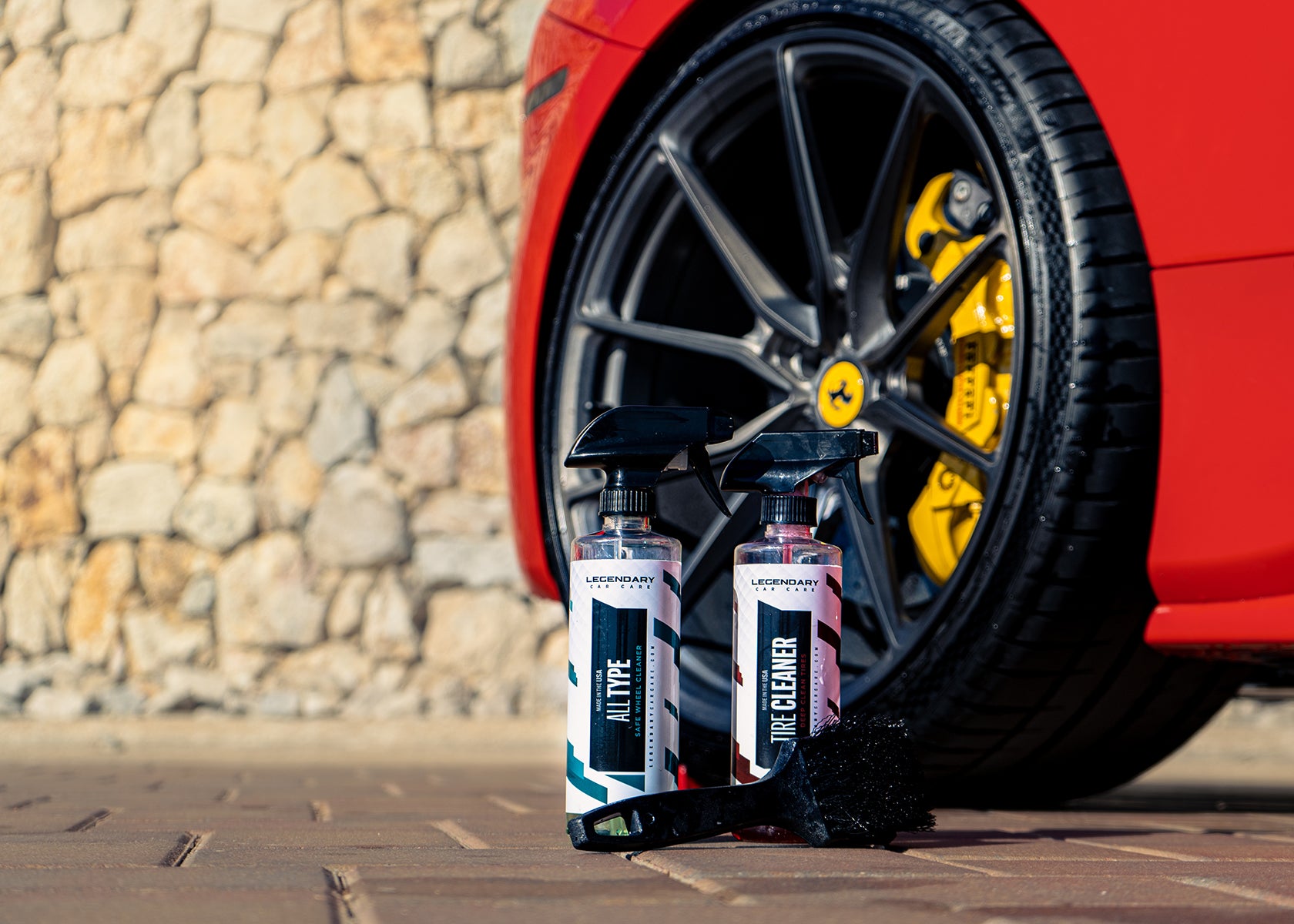 We recommend cleaning one wheel at a time. First, spray down the wheel with a hose or pressure washer. Spray on Legendary’s All Type Wheel Cleaner liberally across the wheel and use a wheel brush to agitate the contamination. Rinse your wheels thoroughly for a clean Legendary Finish.